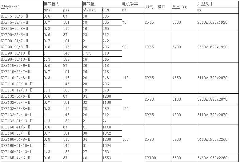 國內(nèi)首創(chuàng),兩級壓縮常壓螺桿空氣壓縮機(jī)。 排氣壓力:0.6-1.3Mpa,排氣量:16.00 -70.00m3/min,電機(jī)功率范圍:75-355 kW