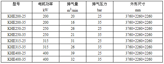 北美研發(fā)中心高端出品 按高壓力40bar設(shè)計(jì) KAITEC—KHE高壓系列電動螺桿空氣壓縮機(jī)機(jī)技術(shù)參數(shù)